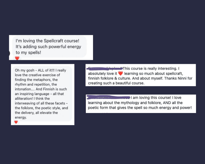This course will teach you to write and chant spells following spellcraft traditions from Finland and surrounding areas. It is based on tens of thousands of spells recorded from oral tradition.